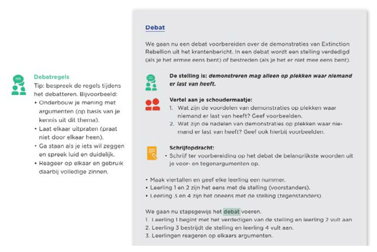 Maar elk thema bevat ook minimaal één les waarin leerlingen bekend raken met verschillende opvattingen over een maatschappelijk vraagstuk dat rond het betreffende thema speelt. Deze geven mooi invulling aan het conceptkerndoel onder maatschappelijke vraagstukken (domein C). De leerlingen worden in deze lessen geholpen om zowel hun mogelijkheden tot eigen oordeelsvorming, als hun mogelijkheden om invloed uit te oefenen op hun omgeving, te versterken. Wat leerlingen uiteindelijk van de maatschappelijke vraagstukken vinden, en hoe zij hun eigen burgerschap invullen, bepalen zij helemaal zelf.