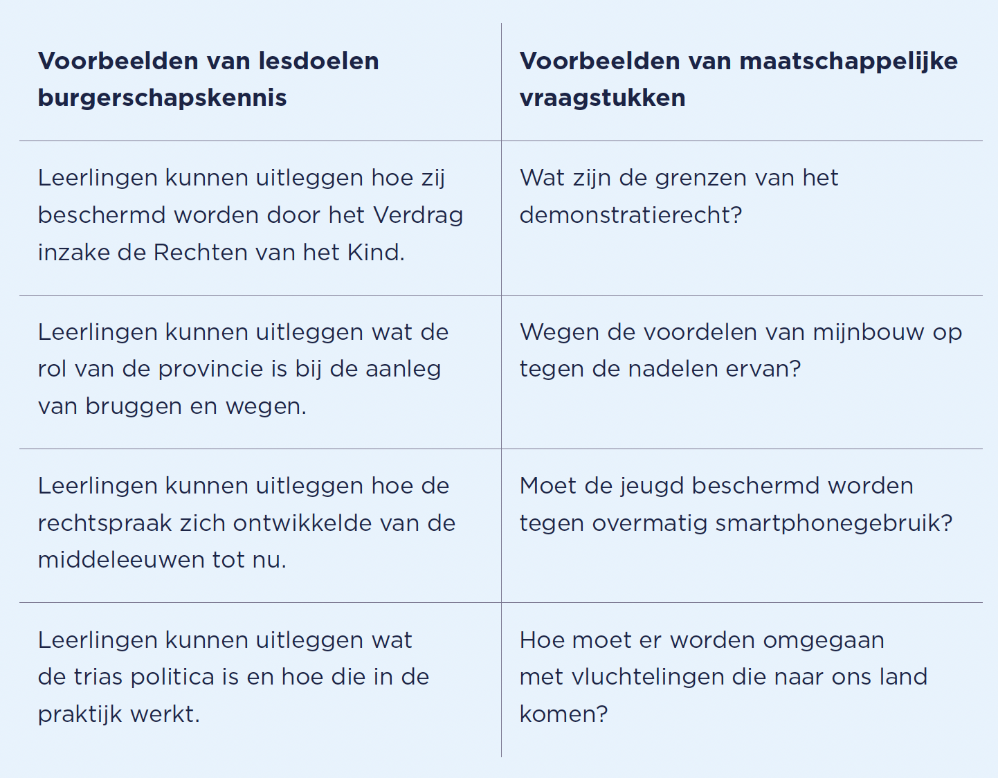 • taken, rollen, rechten en plichten van burgers in de samenleving.