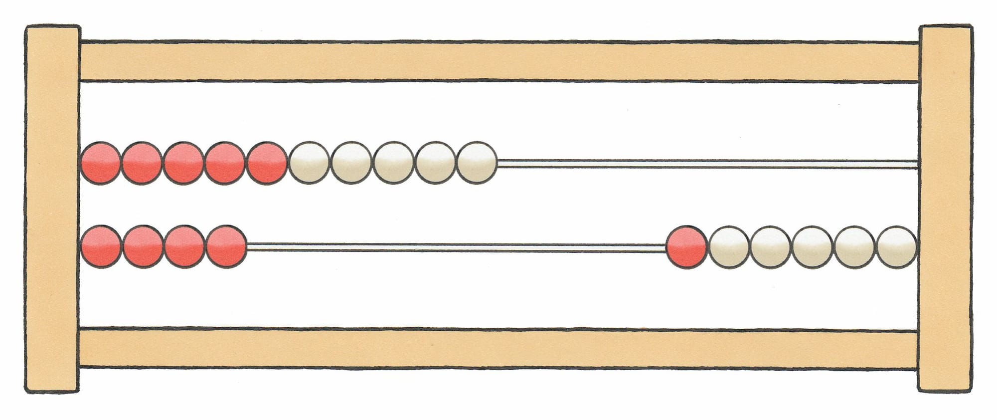 De kralen zijn door middel van kleuren geordend in groepjes van 10, waardoor de tienstructuur van getallen wordt benadrukt en verduidelijkt. Ook is het antwoord snel af te lezen: 10 rode kralen en 4 gele zijn samen 14 kralen.