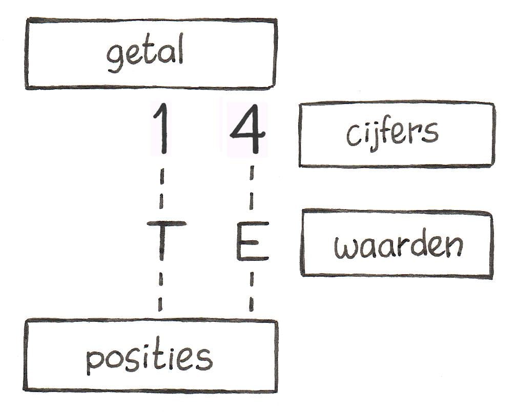 In groep 3 leren de leerlingen bijvoorbeeld het getal 14 schrijven, en ermee rekenen. Ze moeten dan begrijpen dat de 1 staat voor één tiental en de 4 voor vier eenheden.