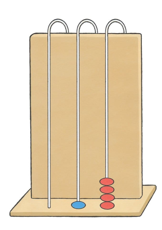 Verder staan de rode kralen links en de witte rechts. Wat is de betekenis daarvan? Is het antwoord soms 95? In een getal staan de tientallen namelijk links en de eenheden rechts, maar op een rekenrek is dit niet zo. Kortom: het rekenrek laat volop ruimte voor misconcepties bij de leerlingen.